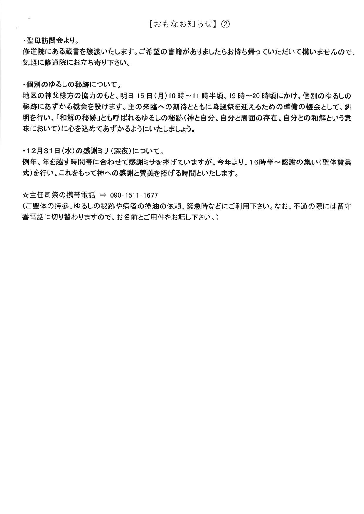 2025年 12月 14日 待降節第3主日(裏面)のお知らせ