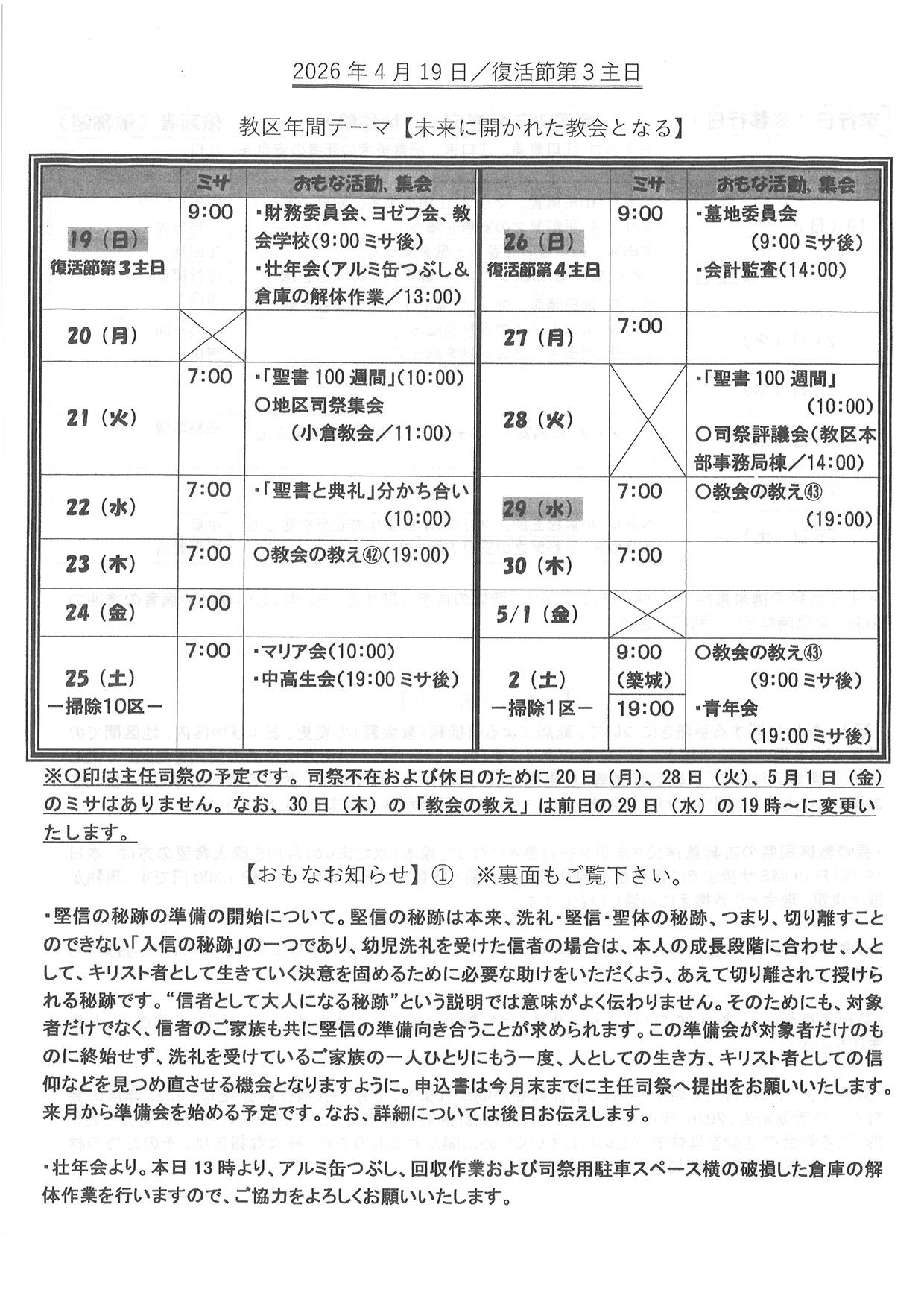 2026年 4月 19日 復活節第3主日のお知らせ